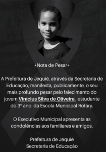 Vinícius cursava o 3º ano do Ensino Fundamental na Escola Municipal Rotary. A Secretaria Municipal de Educação confirmou a morte e lamentou a perda precoce do aluno. Nas redes sociais, o prefeito Zé Cocá também se solidarizou com familiares e amigos da criança, publicando uma homenagem em forma de arte gráfica.
