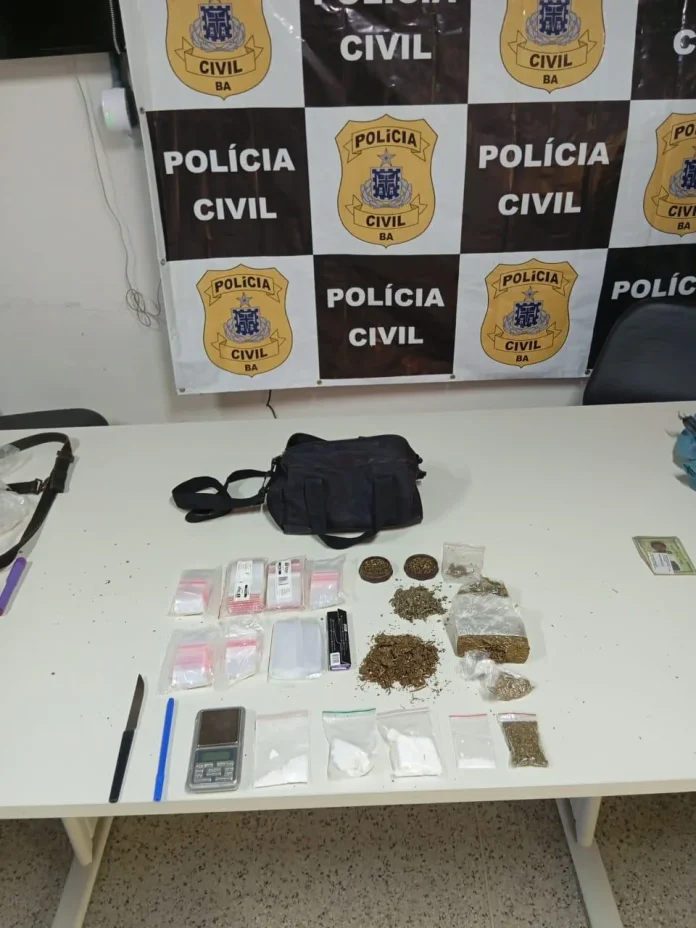 A Polícia Civil da Bahia, por meio da Delegacia Territorial de Mutuípe, prendeu em flagrante na tarde desta quinta-feira (7) um jovem de 24 anos, identificado pelas iniciais E.S.S., suspeito de envolvimento com o tráfico de drogas no município.