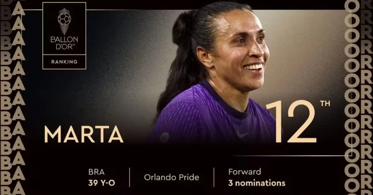 Na última temporada, Marta, de 39 anos, conquistou o título inédito da liga feminina dos Estados Unidos (NWSL), com o Orlando Pride. Além disso, foi vice-artilheira da competição em 2024/25 e escolhida a melhor jogadora da Copa América com a Seleção Brasileira, que ainda foi escolhida como melhor jogadora da competição.