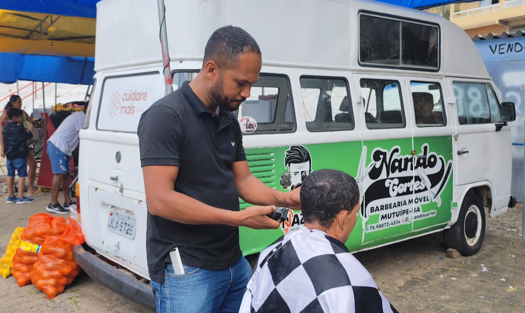Atualmente, ele atende na feira livre da cidade, na cobertura próxima à escadaria, Interessados em conhecer o projeto ou participar do curso de corte de cabelo podem entrar em contato pelo telefone (75) 9887-245.