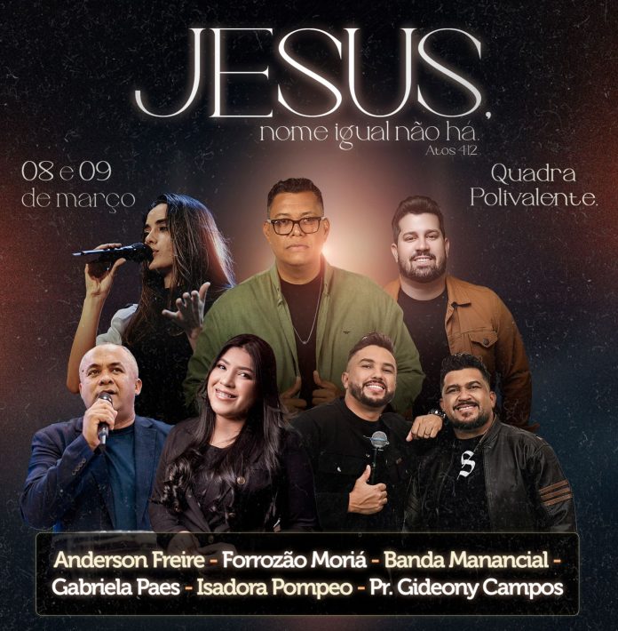 Com o tema “Jesus, nome igual não há” (Atos 4:12), a programação reúne grandes nomes da música gospel nacional, como Anderson Freire, Isadora Pompeo e Gabriela Paes, além da Banda Manancial e do Forrozão Moriá. O evento contará ainda com apresentações das Igrejas Locais e momentos de ministração com o Pr. Elizeu, Pastor Valdinei e Pr. Gideony Campos.